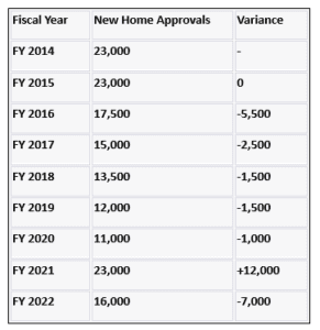 To understand the current situation, let’s delve into the number of new home approvals over the past few years: